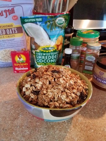 This is my first attempt at homemade granola. Once you have a basic recipe, adding ingredients you love makes it a little more special. It’s simple, quick to prepare, gluten free, and delicious!